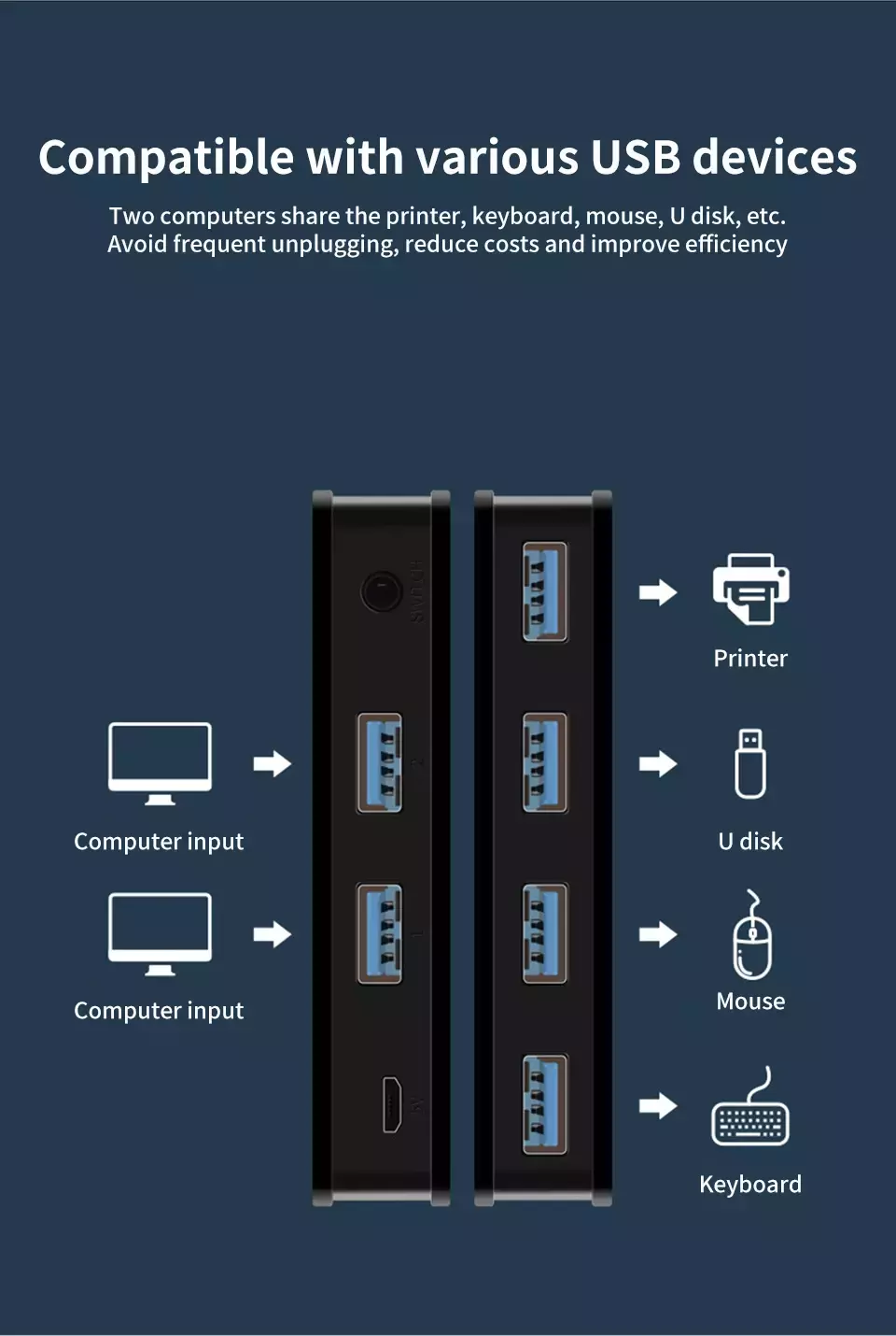 Palavras-chave: adaptador KVM USB 3.0, comutador KVM, switch USB 3.0, controle múltiplos computadores, periféricos USB, gerenciamento de dispositivos, estação de trabalho eficiente.