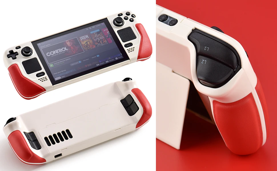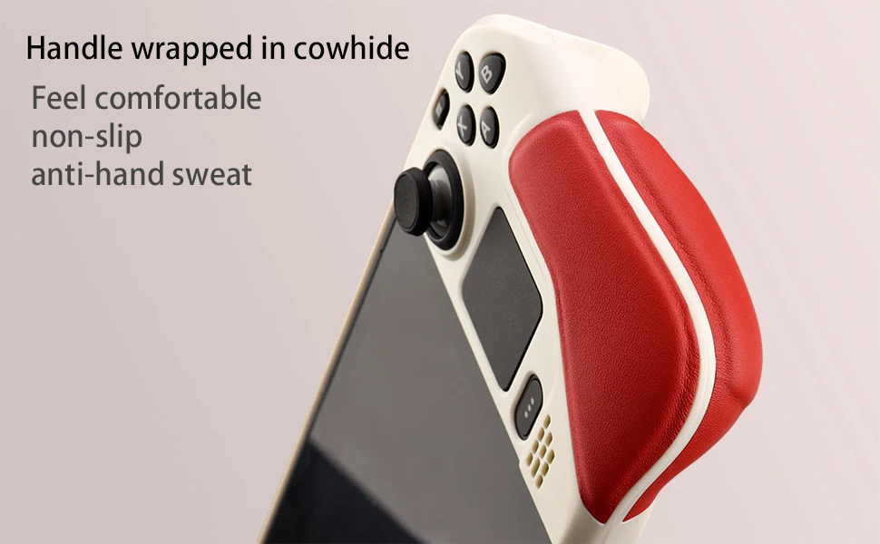 Capa de alta qualidade para Steam Deck: Punho envolto em couro bovino.(envolto em EVA de 2 mm mais camada de cabeça de couro) é macio e confortável, anti-suor das mãos, não machuca a mão.