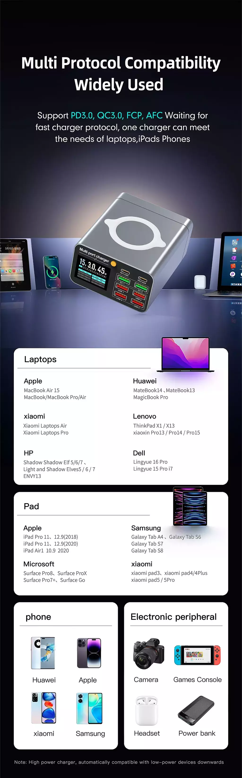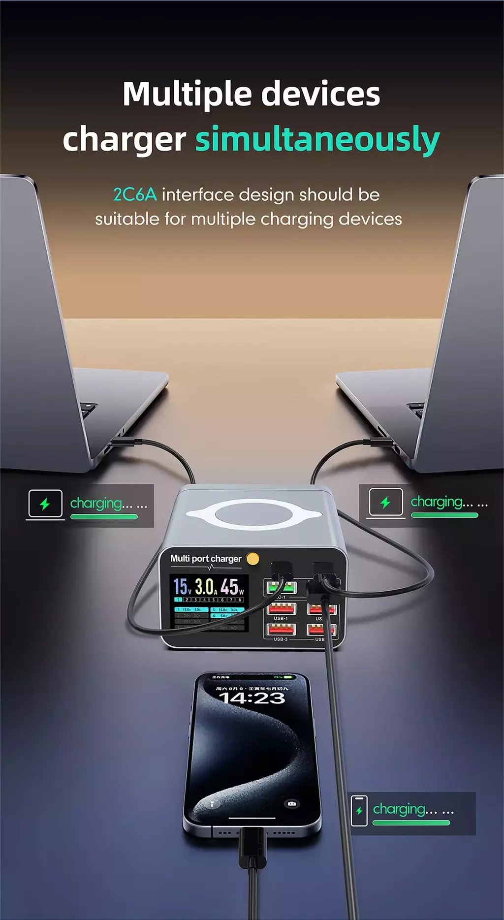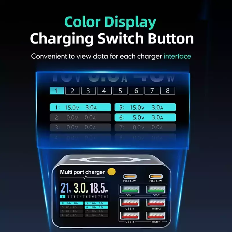 Palavras-chave: carregador USB tipo C, carregador 8 portas, carregador 80W, carregador 120W, carregador digital, carregador rápido, carregador desktop, carregador para múltiplos dispositivos, carregador seguro, carregador portátil.