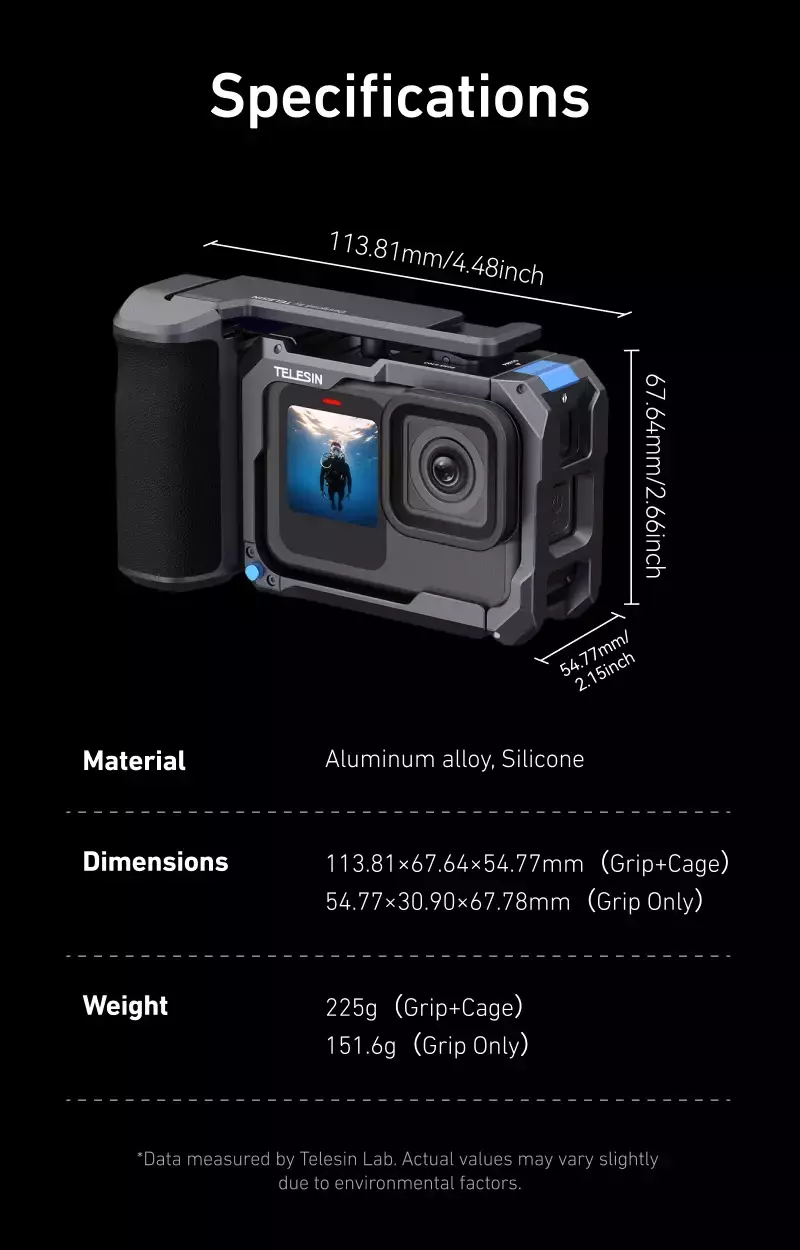 Palavras-chave: kit controle remoto, Telesin abertura de mão, StreetGrip, suporte coelho, gaiola para câmera, acessório GoPro, controle remoto para filmagem, equipamento de filmagem, kit para vlogger, acessórios para câmera.