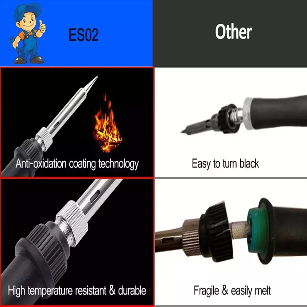 Este ferro é a escolha perfeita para técnicos, hobistas e profissionais que buscam qualidade e versatilidade em uma só ferramenta. O ajuste de temperatura evita danos a componentes delicados, enquanto a ponta substituível mantém seu equipamento sempre pronto para uso.