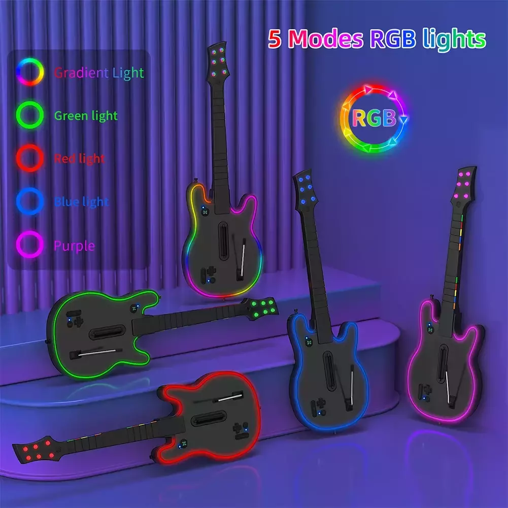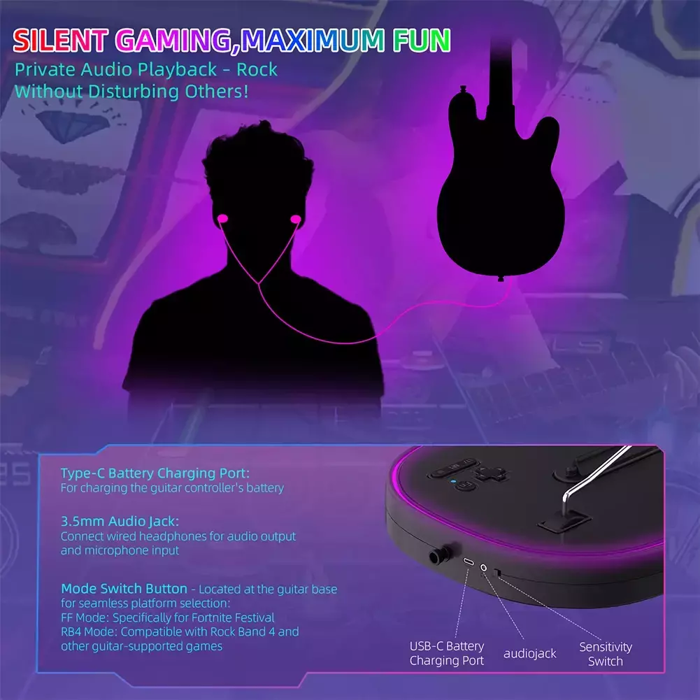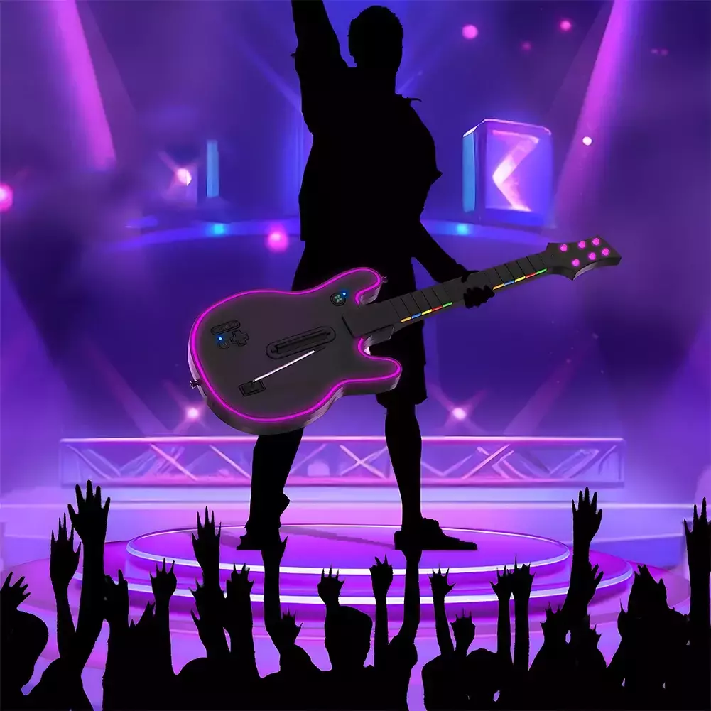 ⚡ Com tecnologia wireless 2.4G, você elimina os cabos e mergulha em uma experiência fluida, responsiva e sem interrupções. Cada riff, cada solo, cada batida é capturada com sensores de alta precisão que transformam seus movimentos em pura arte digital.