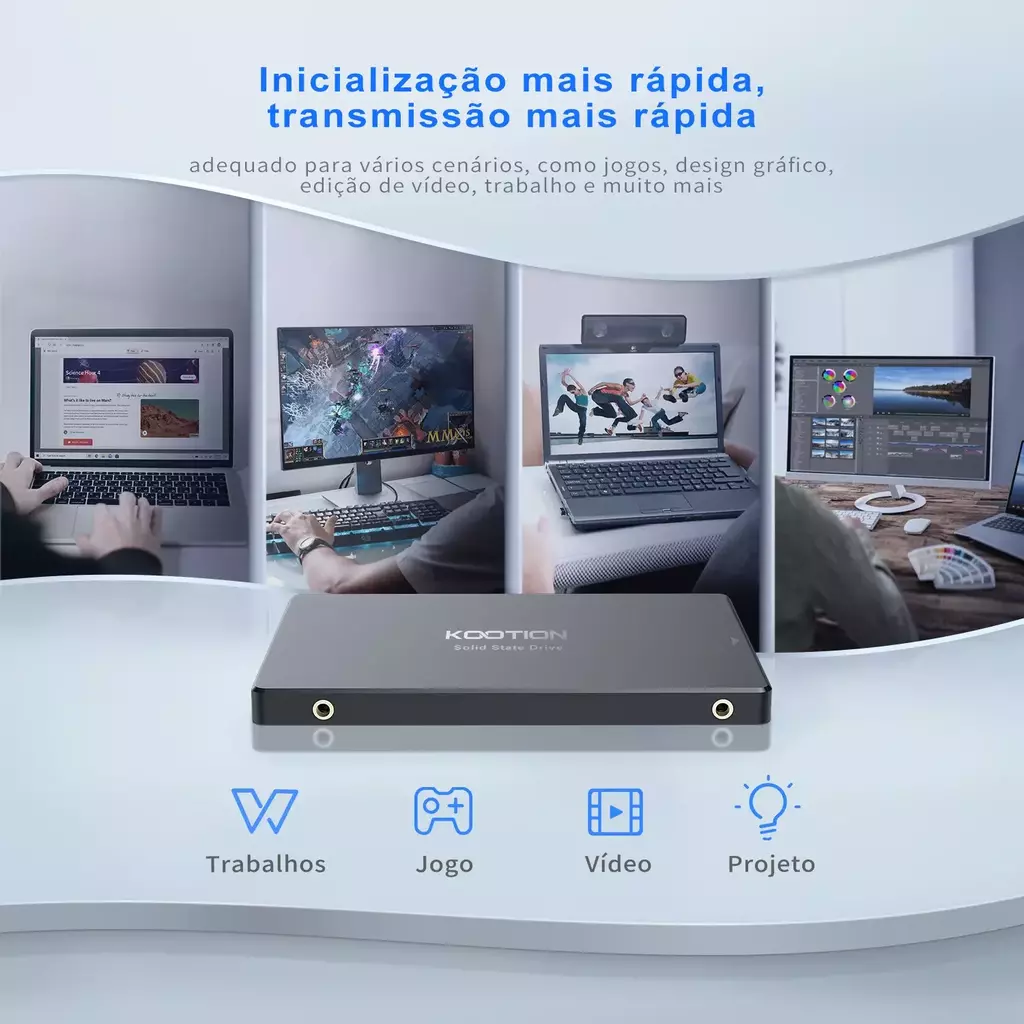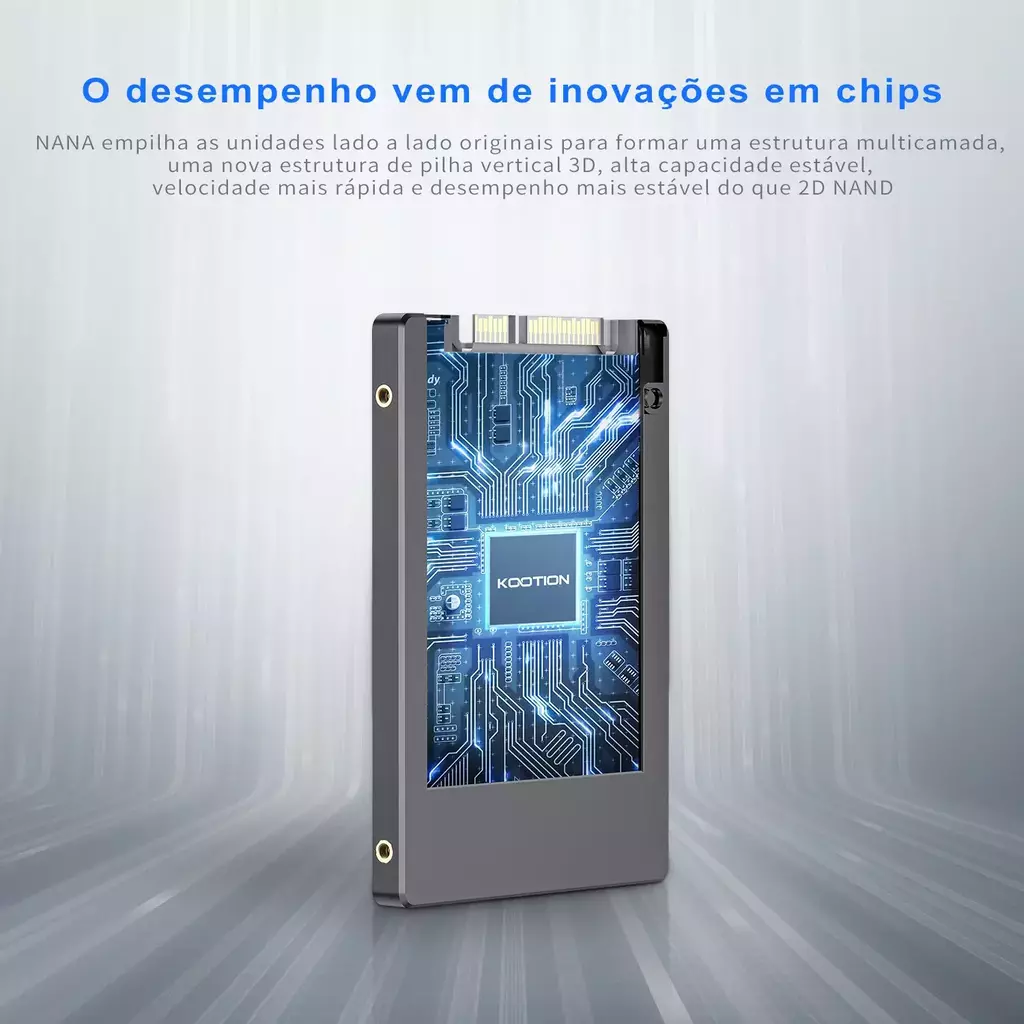 Palavras-chave: SSD SATA, Kootion X12, armazenamento rápido, disco SSD 2.5 polegadas, upgrade de computador, SATA 3, disco rígido sólido, desempenho PC, memória rápida, armazenamento confiável.