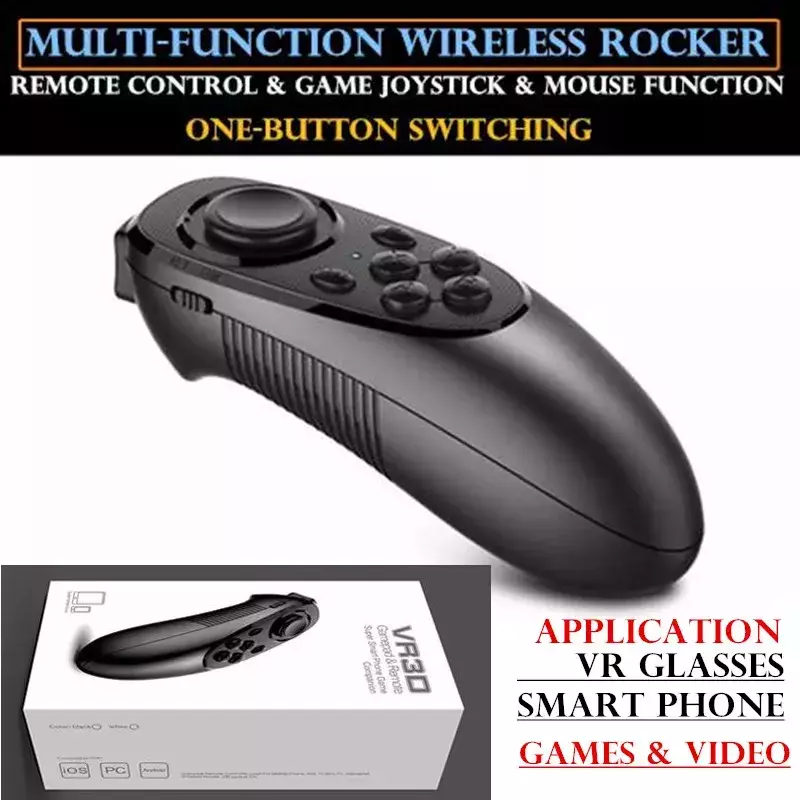 VRPARK Y1 Multi-função Wireless GamepadModelo: VRPARK Y1Tamanho do balancim: 122x46x35mmBateria: AAA alcalina 1.5V x2 (Não incluir)Suporte para IOS Android PCWireless: Compatível com Bluetooth 3.0 compatívelDesempenho da compatibilidade: vidros de VR/telefones celulares/tabuletas/caixas da tevê/controles remotos do PC/ratos sem fio, etc!Controle remoto sem fio que suporta operação single/double handed! Aproveite VR controle, single player, emulador jogo vídeos1. Bluetooth-compatível V3.0, boa compatibilidade2. Selfies móveis/jogos/música/filmes/livro eletrônico lançando/controle remoto do mouse e outras funções3. Sistema operacional do reconhecimento automático para iOS/Android4. Modo do rato do defeito após a correspondência bem sucedida do telefone5. Modos do controlador @ + A, B, C, D de VR para operações da música/jogo/vídeo/rato, etc.