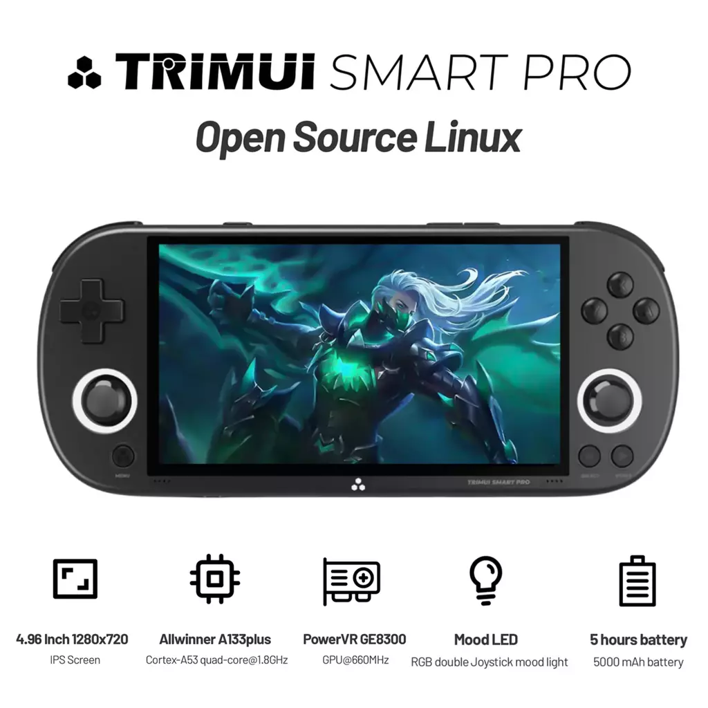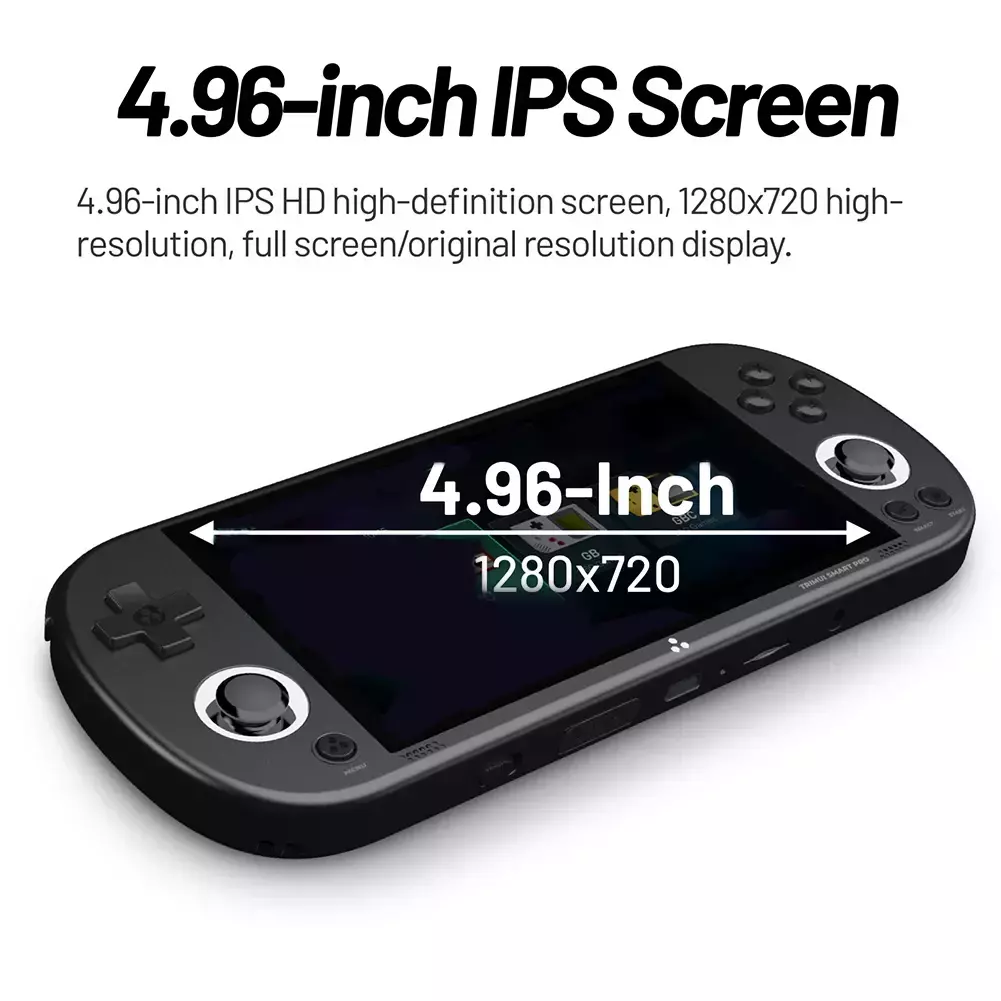 Reviva os melhores momentos dos jogos clássicos com o Trimui Smart Pro Retro Console, equipado com uma tela IPS de 4.96 polegadas que oferece cores vibrantes e alta definição para uma experiência visual incrível.