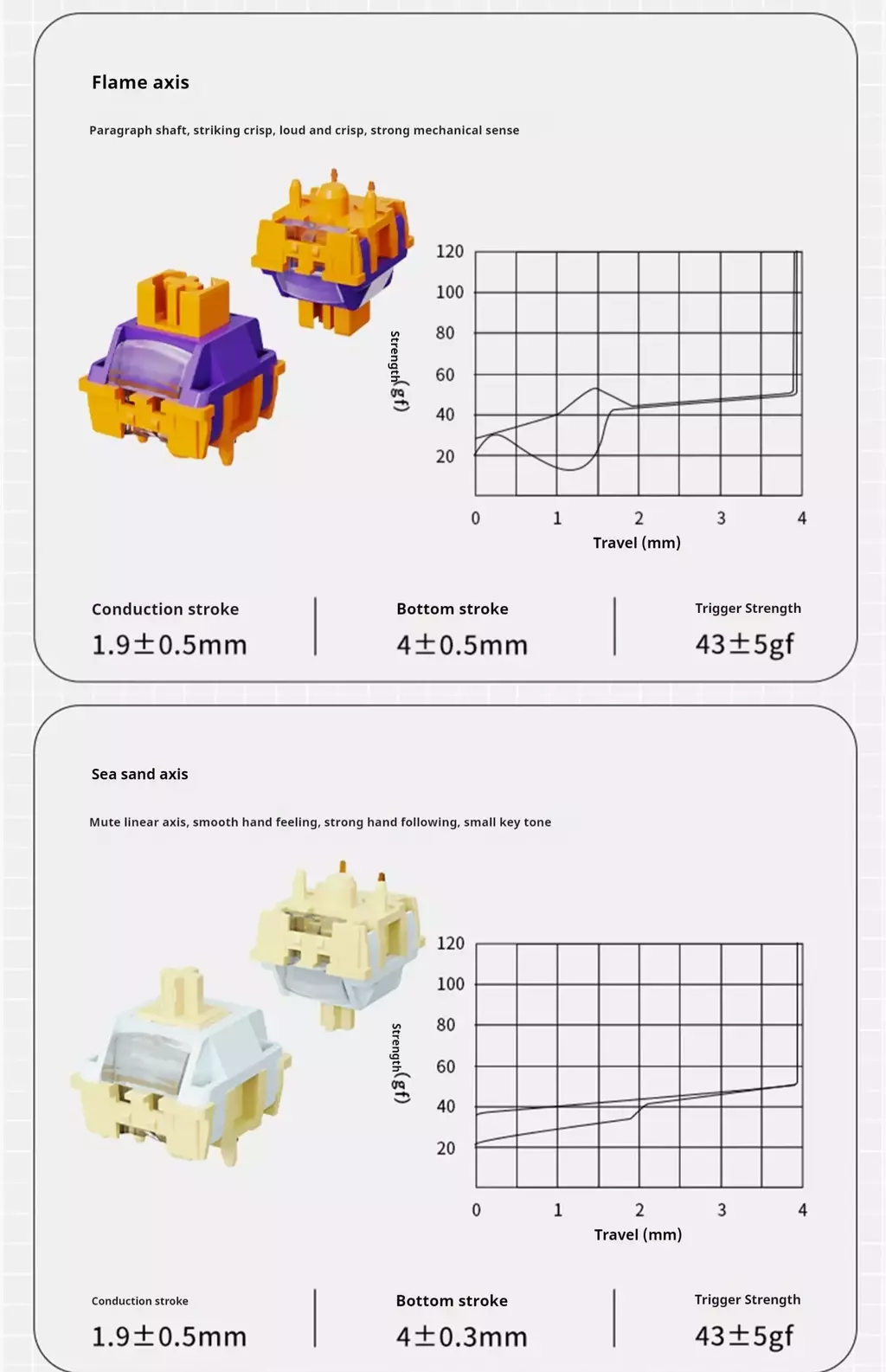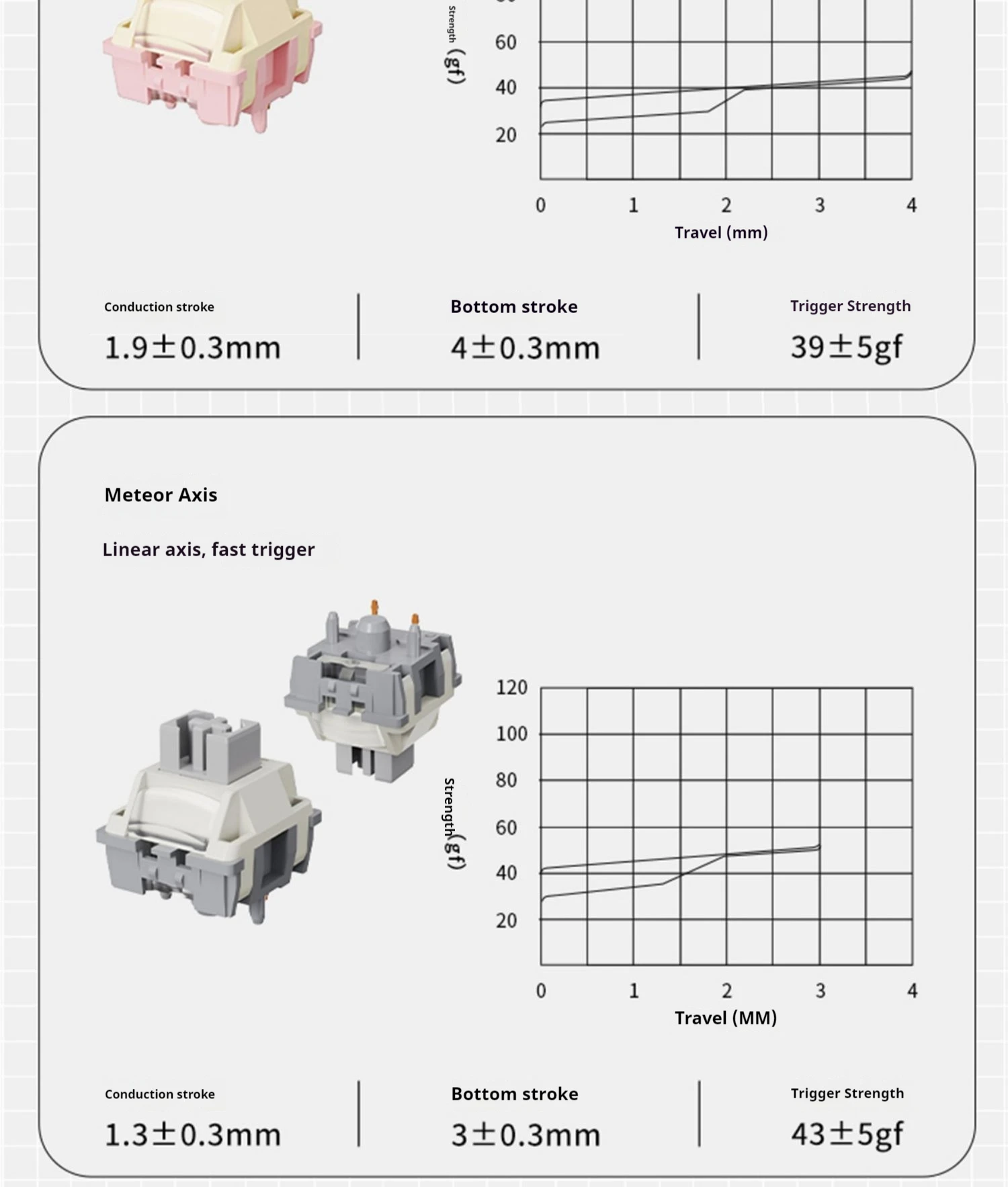 Silent linear shaft, smooth feel, strong heel, very low key noise.